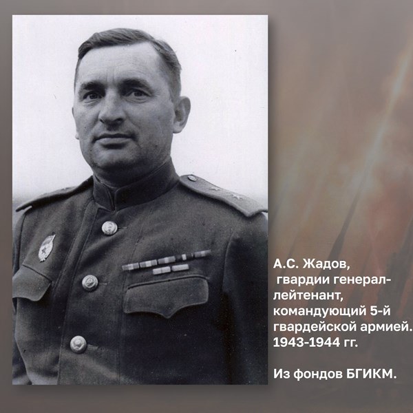Гвардии генерал-лейтенант А.С. Жадов отличился в боях на Огненной дуге в должности командующего 5-й гвардейской общевойсковой армией.