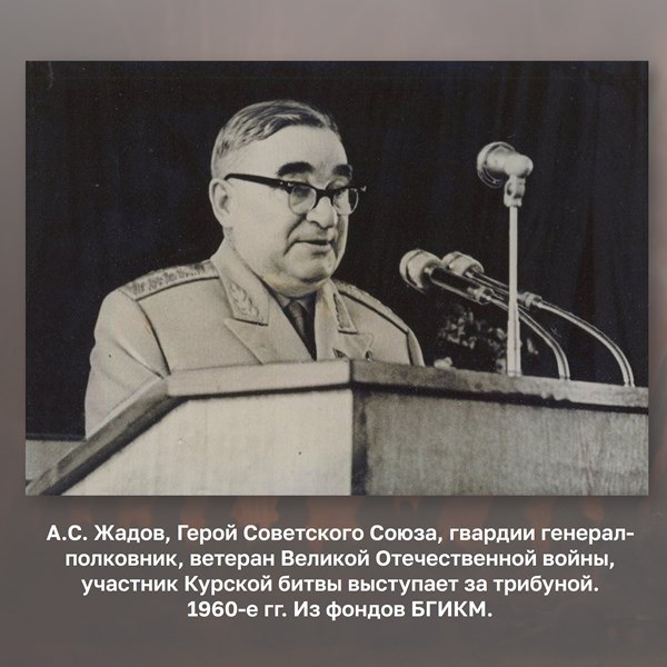 Гвардии генерал-лейтенант А.С. Жадов отличился в боях на Огненной дуге в должности командующего 5-й гвардейской общевойсковой армией.